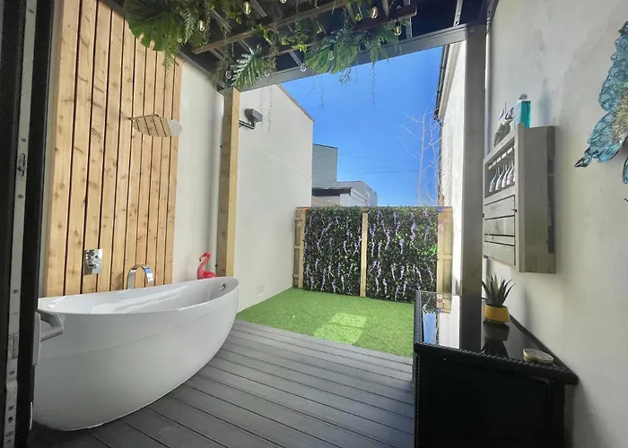 ( ex. Coastline Retreats - Brand New Jungle Themed Garden Apartment - Outdoor Bath - Next To Seafront - Childrens Toys - Superfast Wifi - Netflix - Disney )
